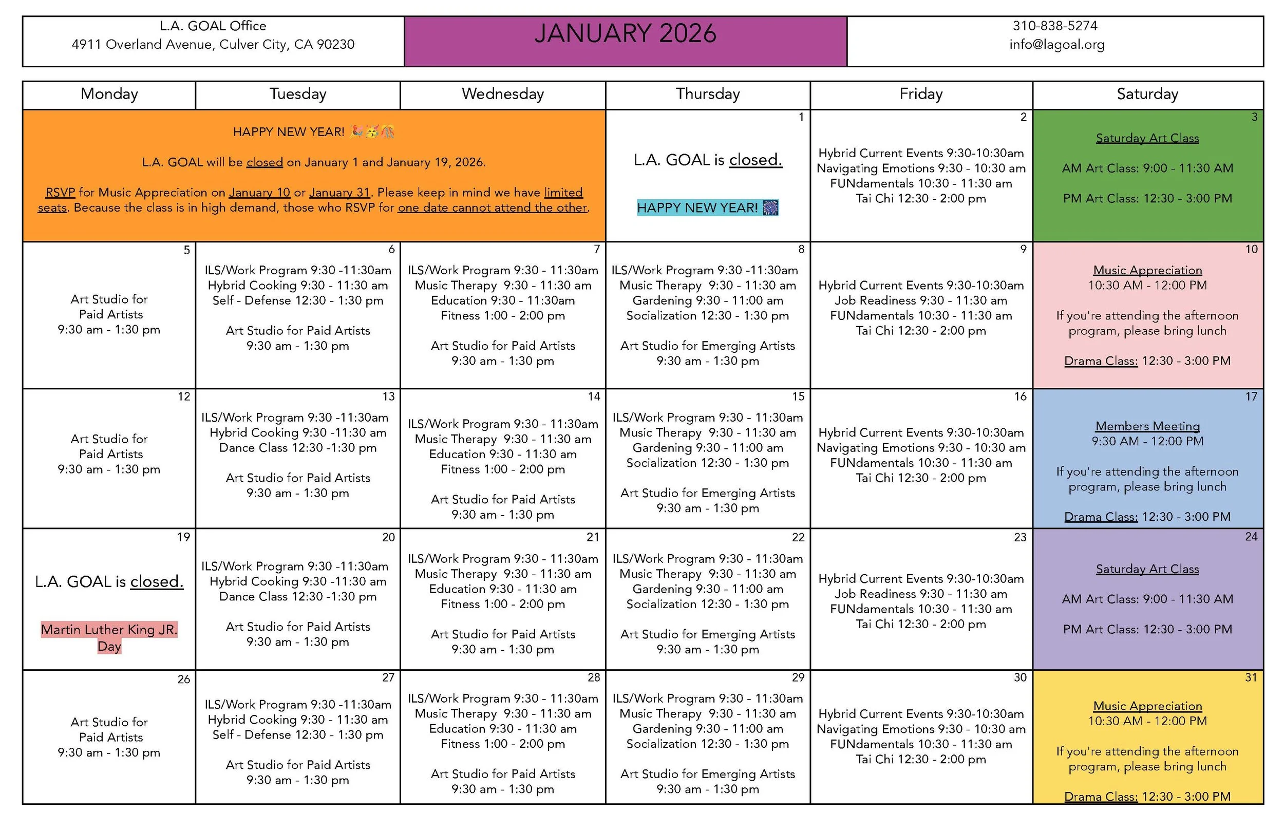 January Program Calendar Please refer to our calendar for a full list of programs taking place this month.